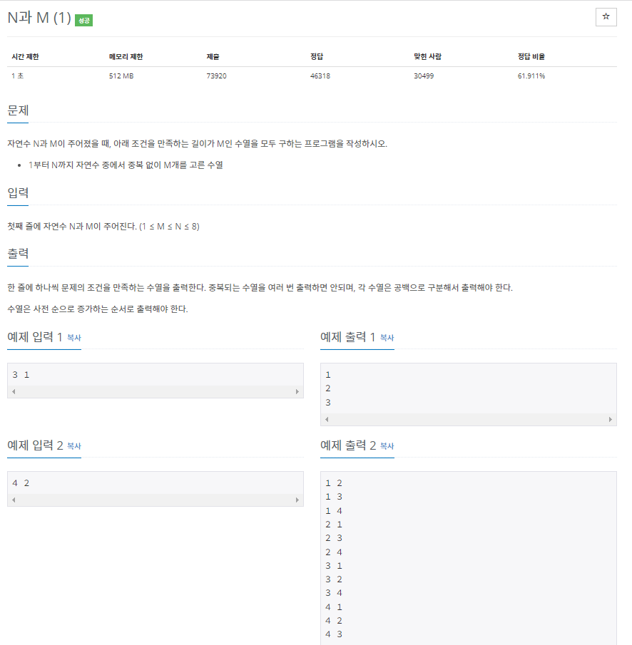 | 백준 15650번 : N과 M (2) (0) | 2023.01.04 |