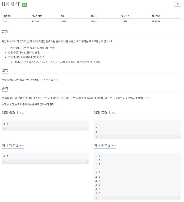 | 백준 15650번 : N과 M (2) (0) | 2023.01.04 |