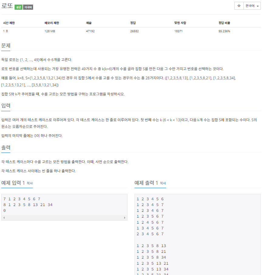dfs를 활용한다. 결과는 6가지의 숫자다. 그 6 가지의 숫자는 오름차순이어야만 하기 때문에