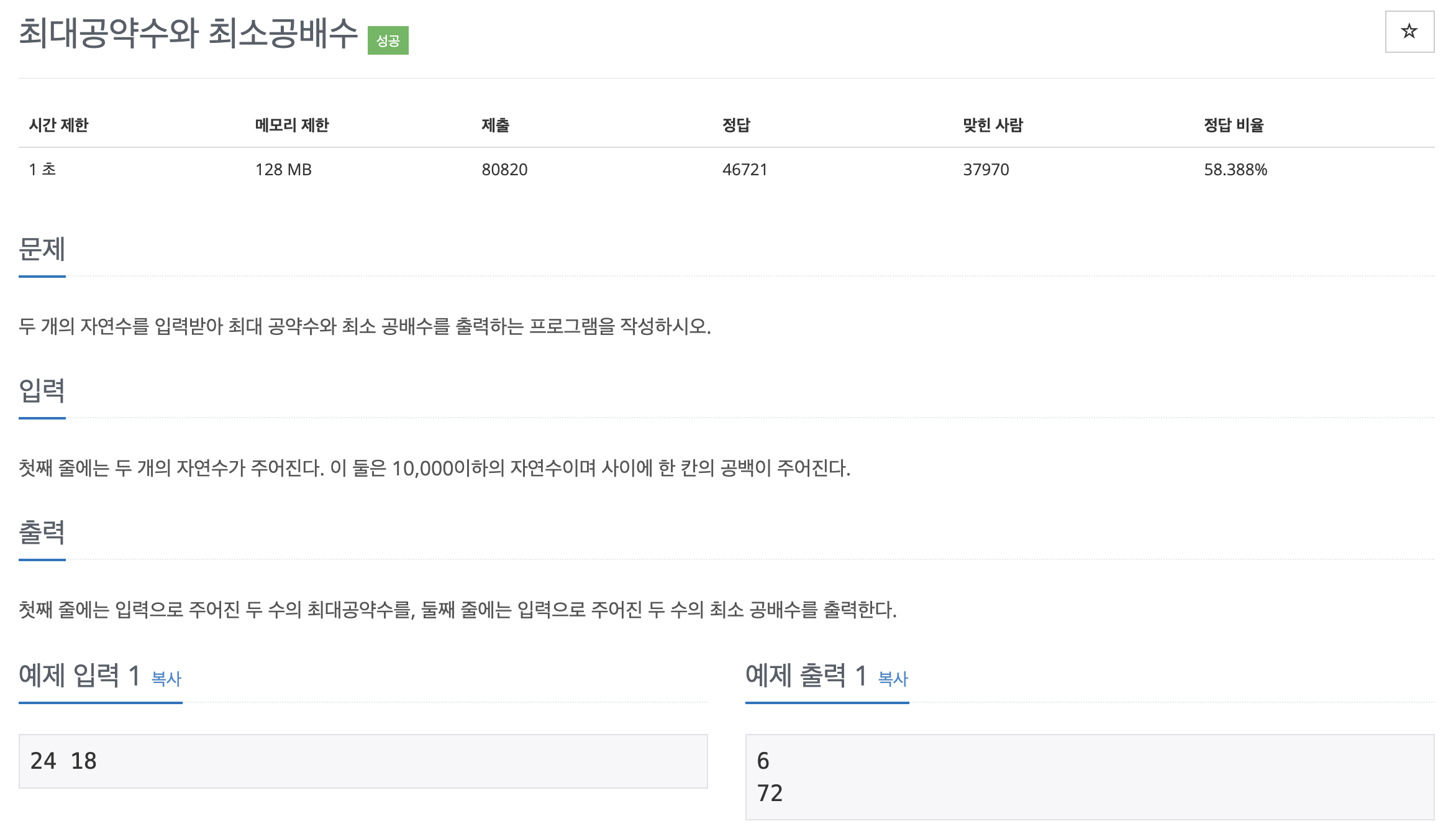 처음에 브루트포스로 입력 받은 제일 작은 수부터 서로 나누어 떨어질때의 값을 사용하려고 했었다. 시간 복잡도는 O(N)이다. 근데 입력부분에서 이 둘의 정수는 10000 이하의 자연수라는 점에서 브루투포스로 하다간 큰일날 것 같았다... 그래서 다시 폭풍 서치... 유클리드 알고리즘을 알게되었다.