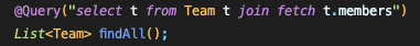로직에서 사용한 findAll()은 JPQL로 보면 "select t from Team" 과 같습니다.